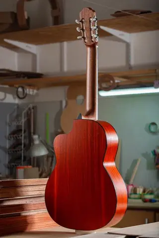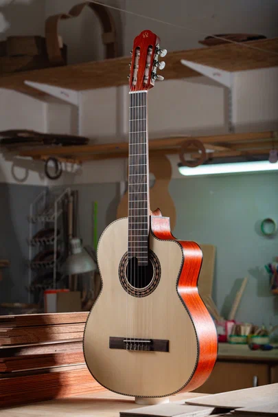 Верхняя дека – ель категории AАА Нижняя дека и обечайки – Африканский падук категории ААA